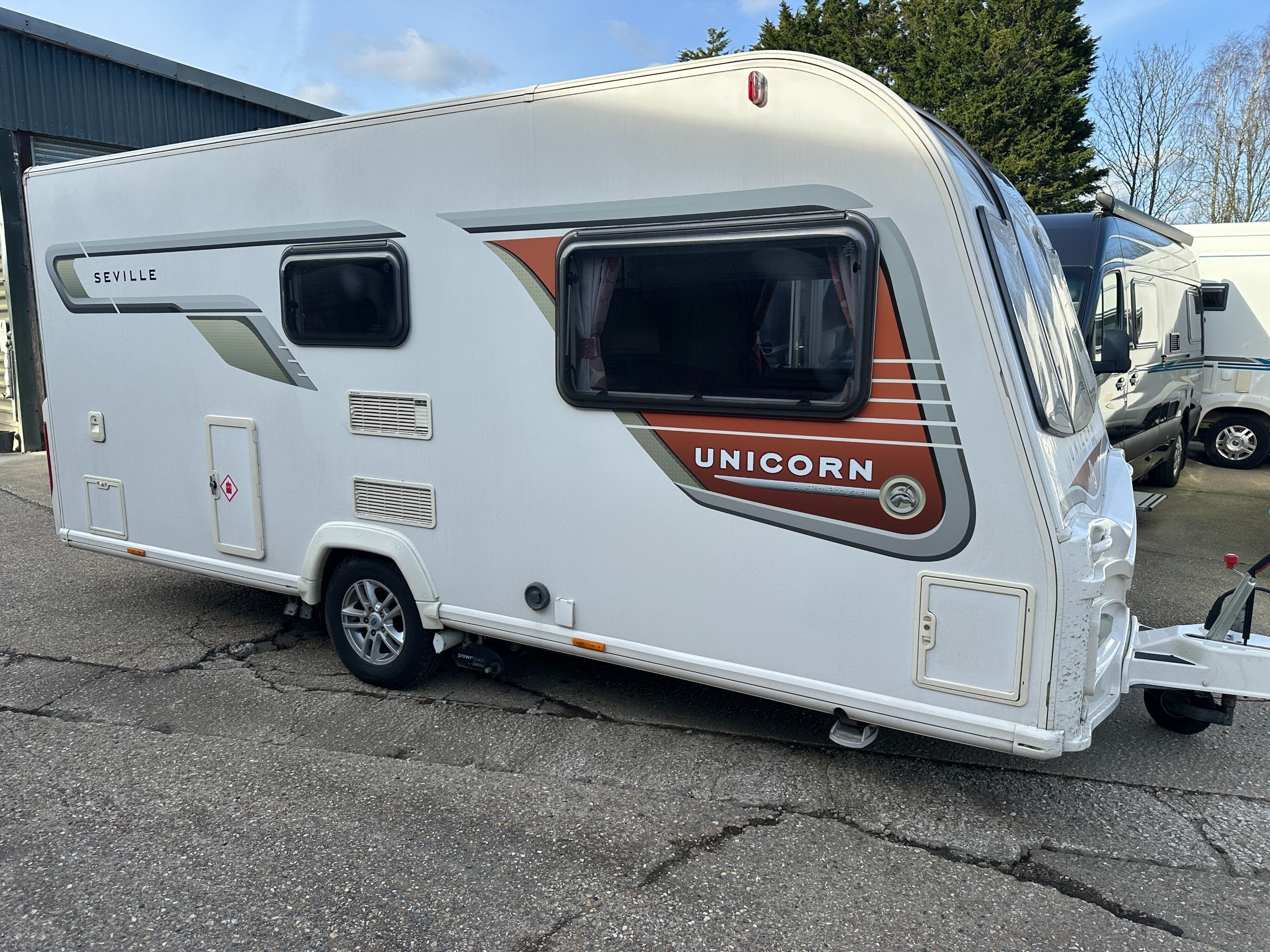 The Bailey Unicorn Seville is a lightweight two-berth with lots of storage capacity, especially in the kitchen